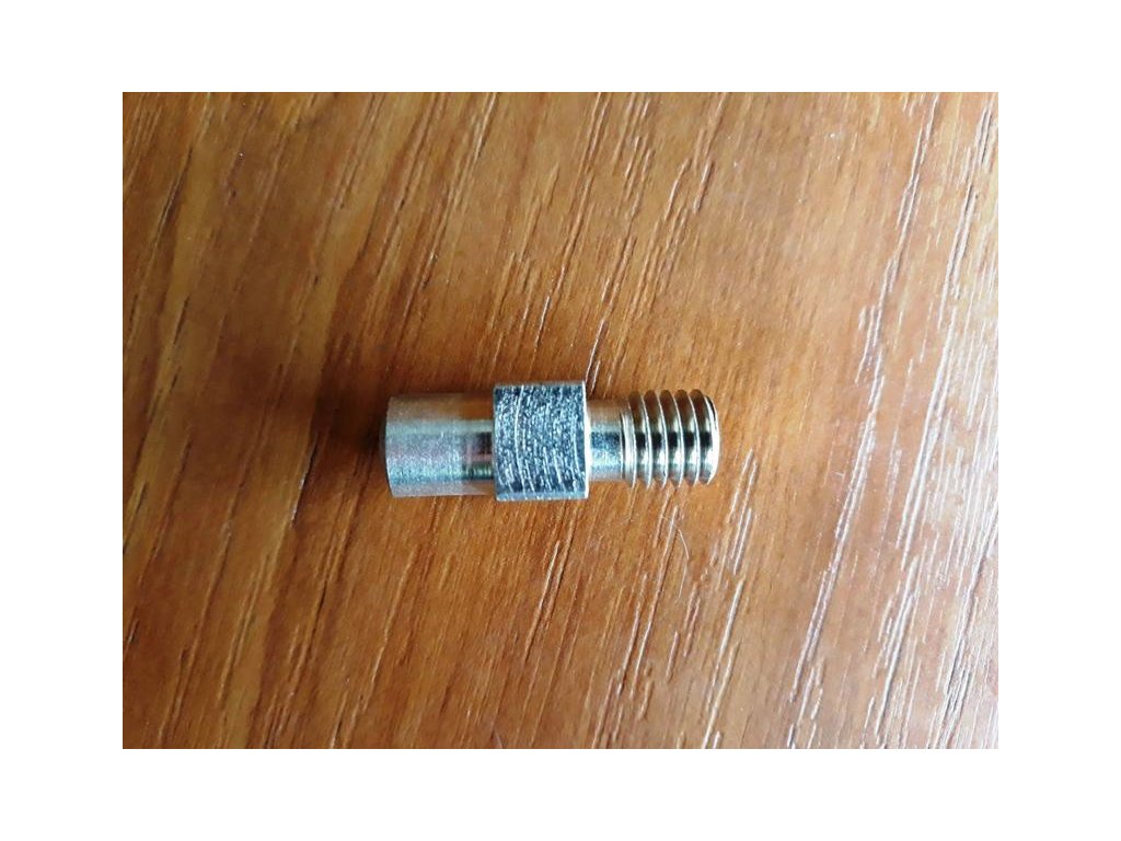 Ein Metallquadrat (ein Messer tragend) in eine Schraube für die Porkert-Fleischwölfe.